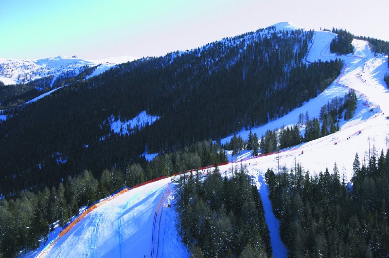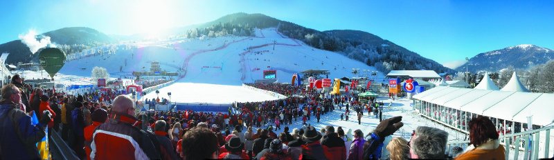 Kilátás a relax zónából a Franz Klammer lesiklópályára