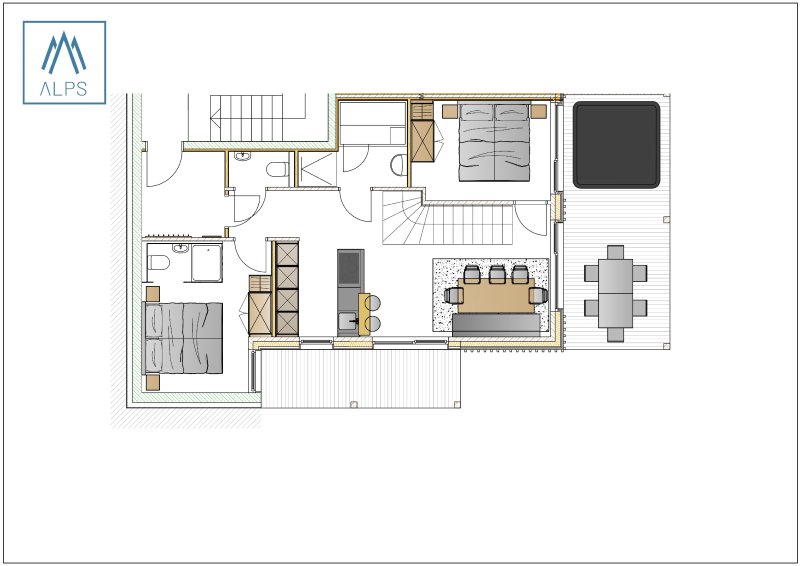 Superior/Premium 3 hálószobás apartman szaunával, pezsgőfürdővel - 100 m2 / 8 fős - földszinti alaprajz
