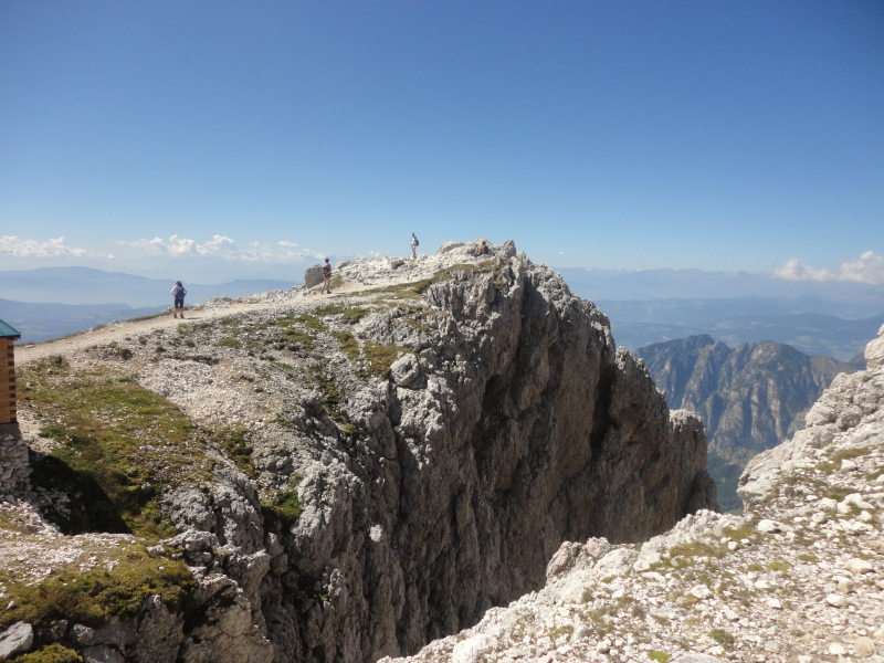 A drótkötéllel megerősített meredek köves gyalogútról (a túra legizgalmasabb része!) szép a kilátás a Preuss és Vajolet menedékházakra.