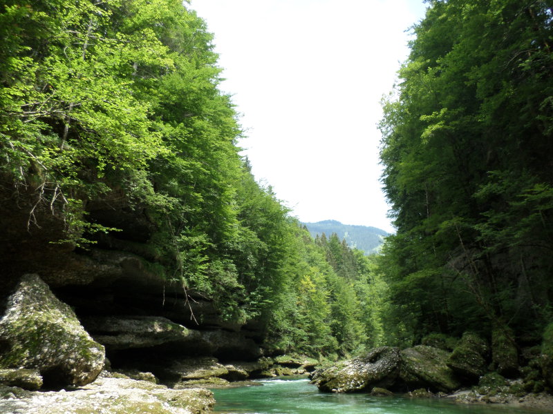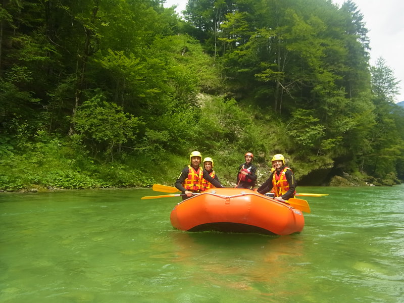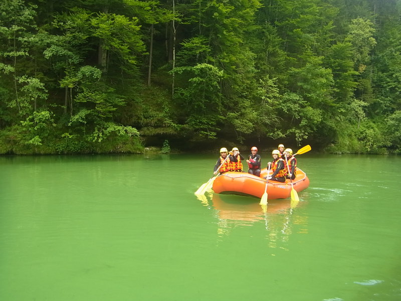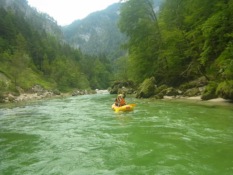 Hétszemélyes csónak a Salza egyik zúgójánál