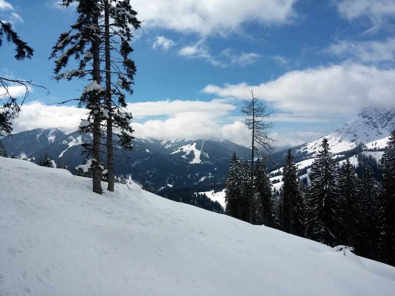 A háttérben Mühlbach sípályái, jobbra a Hochkönig lejtője látható
