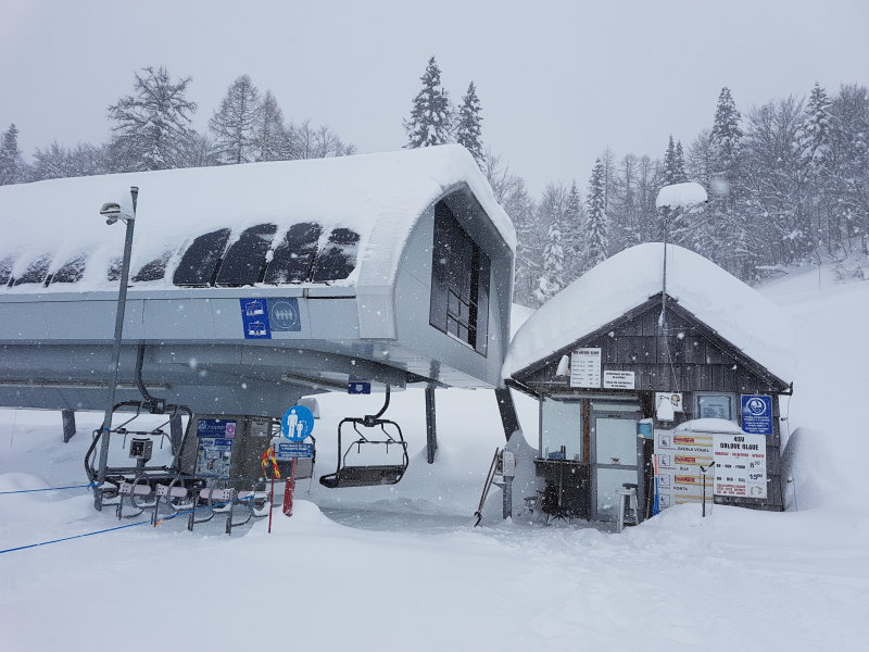 A négyüléses lift, jobbra a kék 4-es pálya