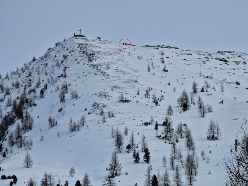 A Hüttenkogel-csúcs (2231m). Két sítúrázót láttam a csúcs közelében