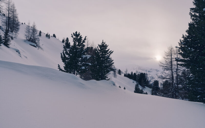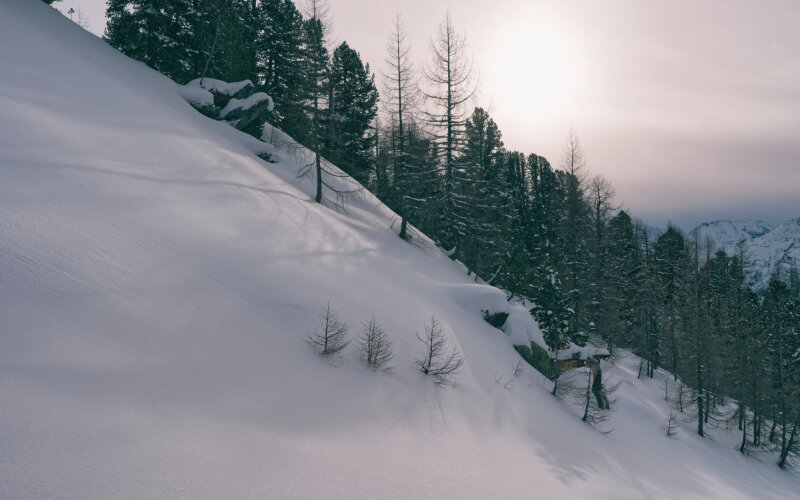 Erdei út 1300m-en. A hó kevés de a fókázáshoz és a hangulathoz elég.