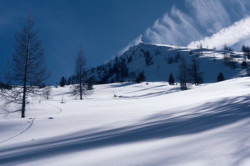 Lavinaveszélyes hóréteg a Hüttenkogel oldalában