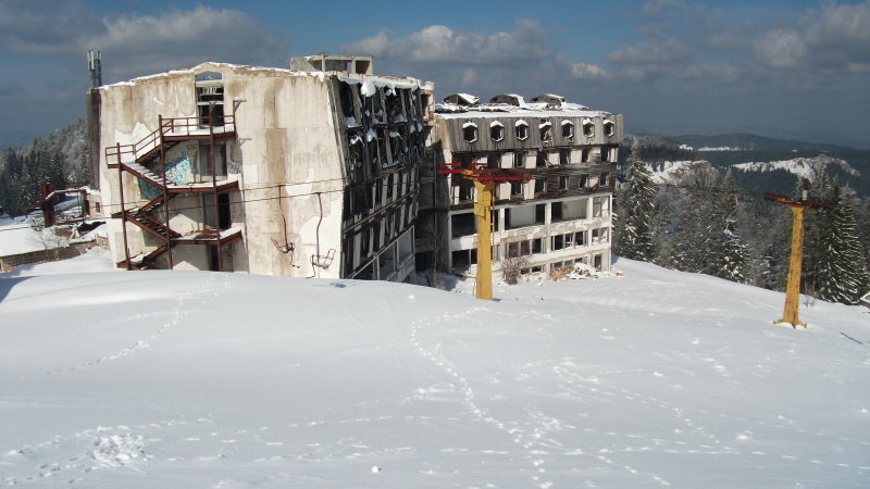 Felbombázva, leharcolva 2. Mellette a régi 1 üléses. Ma itt is Leitner 6 személyes visz fel.