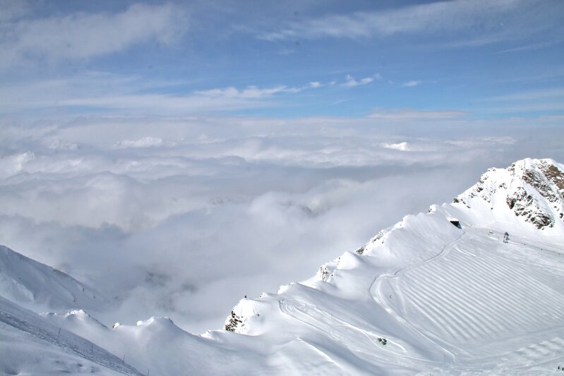 360 cm hó a gleccseren: két havazás közt rövid időre előbújt a Nap 3000 méterrel a mindennapok felett