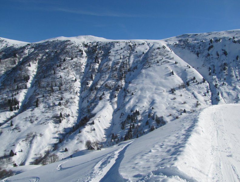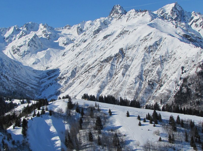 A Chalets pálya, háttérben a La Chal felvonó teteje