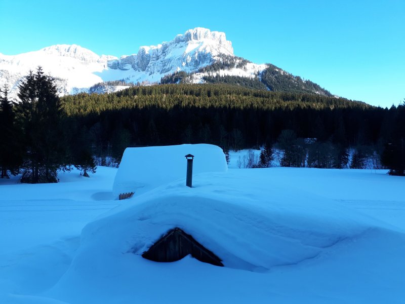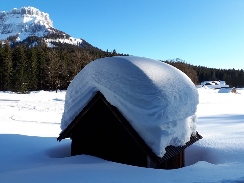 A Blaa Alm hütte felé sétálunk, hatalmas hófalak között