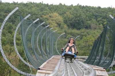 1000 méteres sínes bobpályája a kislődi Sobri Jóska Élményparkban (Bakony)