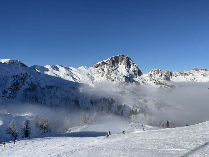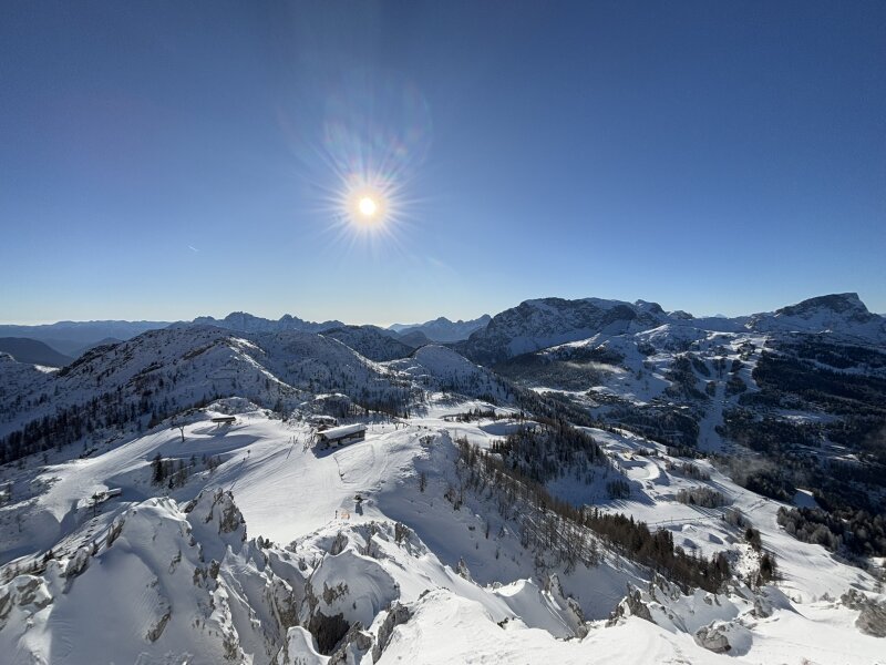 Pazar kilátás a 110 km-es pályarendszerre a Gartnerkofel csúcsáról