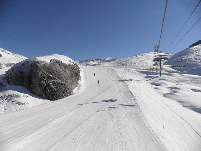 La Bergerie felvonó, valamint a Plagne Soleil és Plagne Village között levezető kék pálya