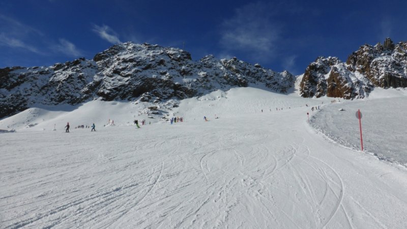 Kilátás a Mittelbergbahn tetejétől, szemben a Wildspitze csúcsa, alattunk a 36-os pálya.