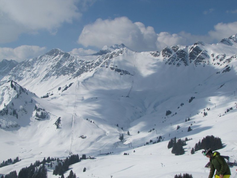 Avoriaz, kilátás a Grandes Combes felvonó tetejétől Svájc felé