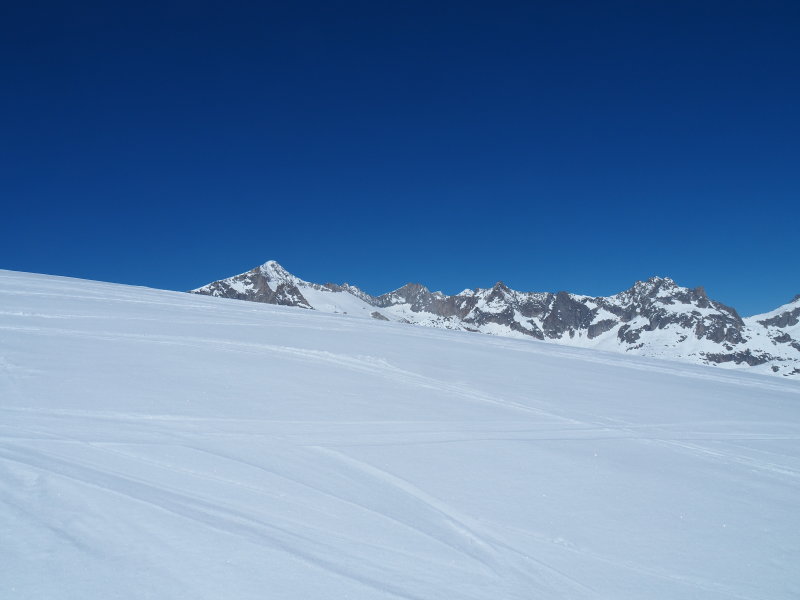elöző kép közelítve: balra a Finsteraarhorn, jobb oldalon Lauteraarhorn, Schreckhorn.