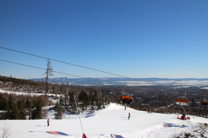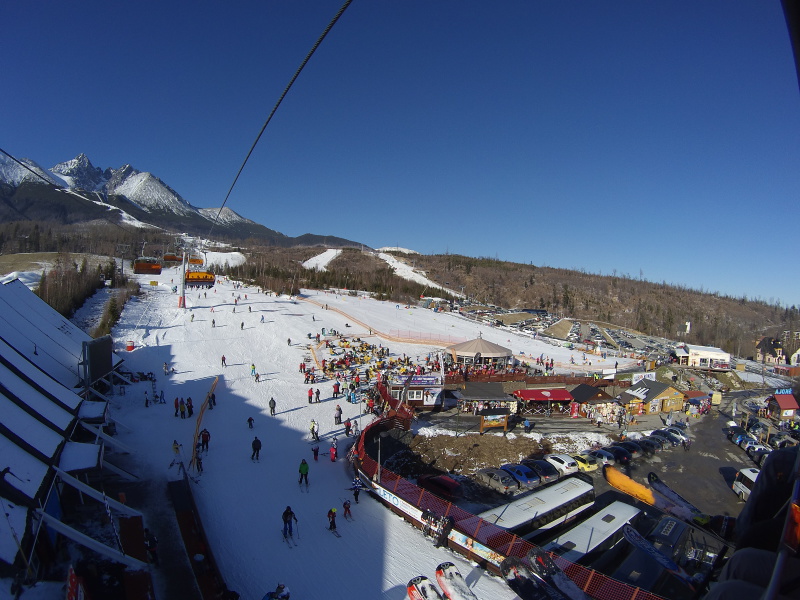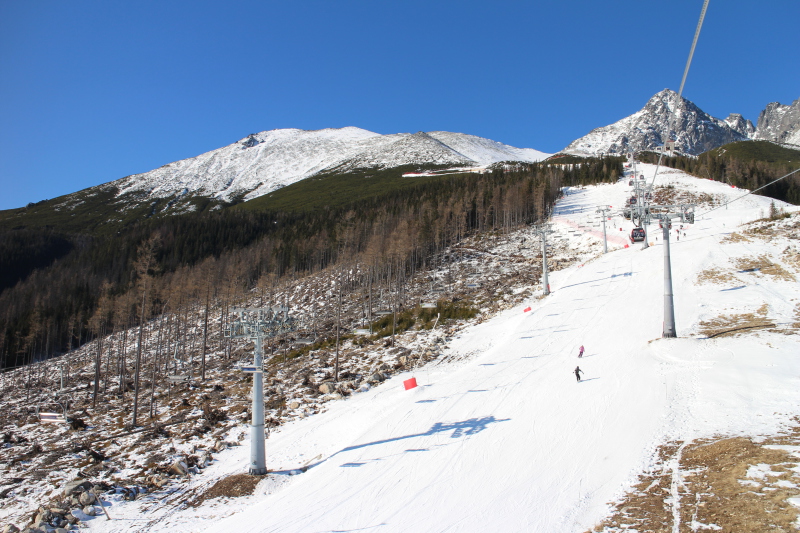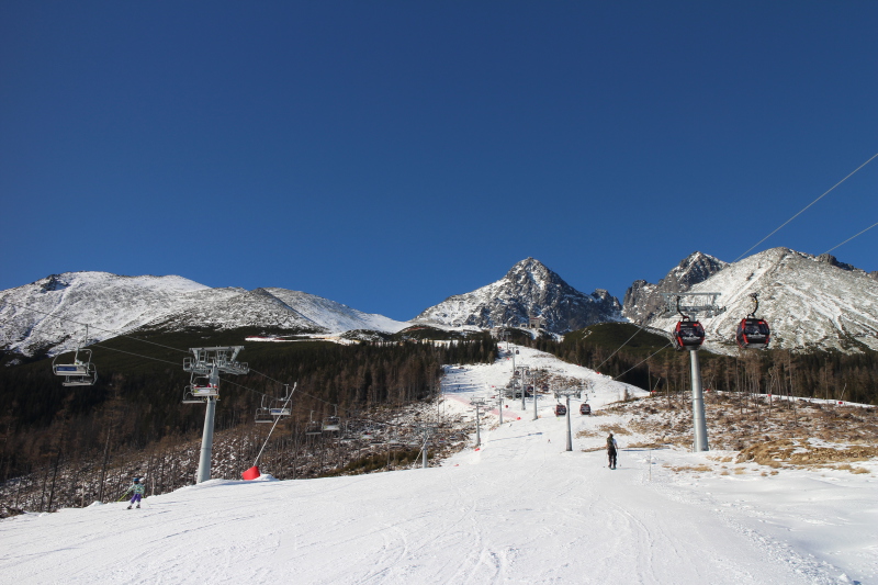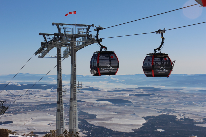A vadiúj kabinos lift a Start (középállomás) és a Kőpataki-tó (Skalnaté Pleso) között