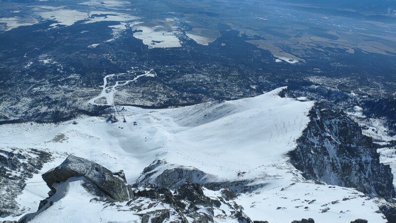 Kilátás a sípályákra a Lomnici-csúcsról