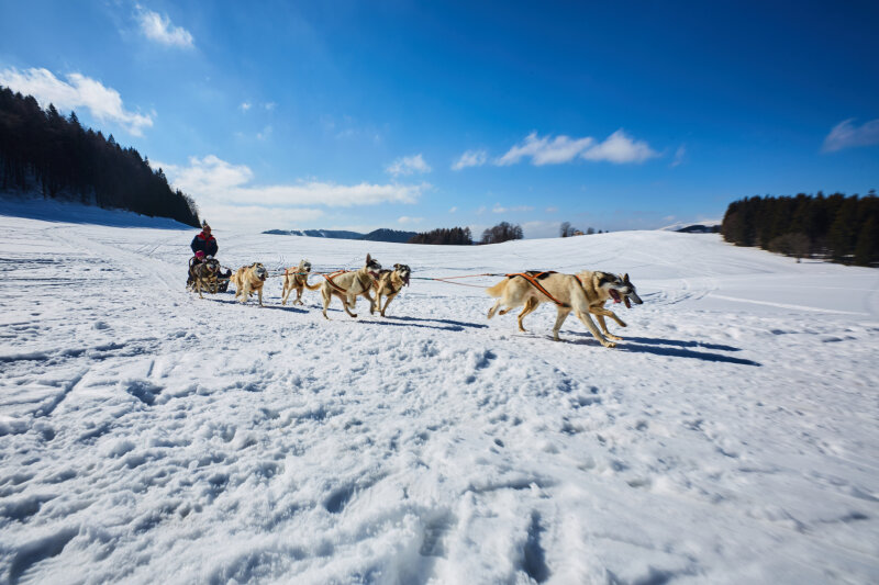 A kutyaszánozás is népszerű program – husky fogat Donovalyban