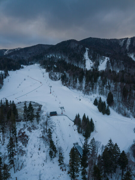 Sachticky: kilátás a sípályáról a 3 csillagos pályaszállásra