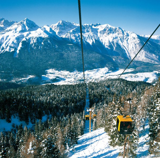 Síelők a Dolomitokban