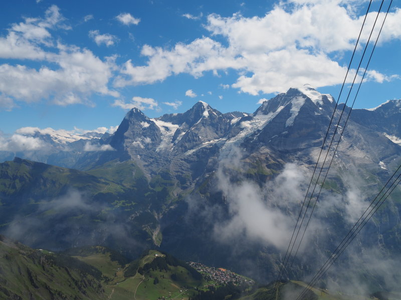 Eiger, Mönch, Jungfrau a Brigről. Egy kis felhő zavarja a szép tájat