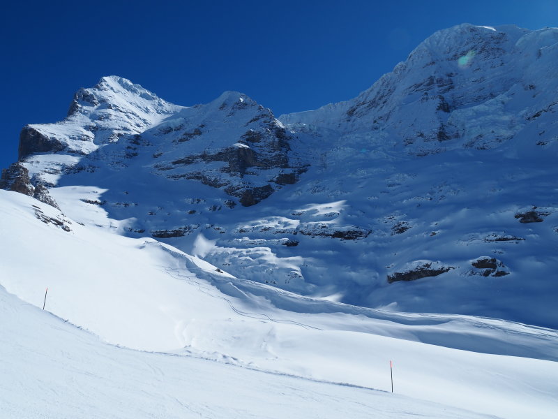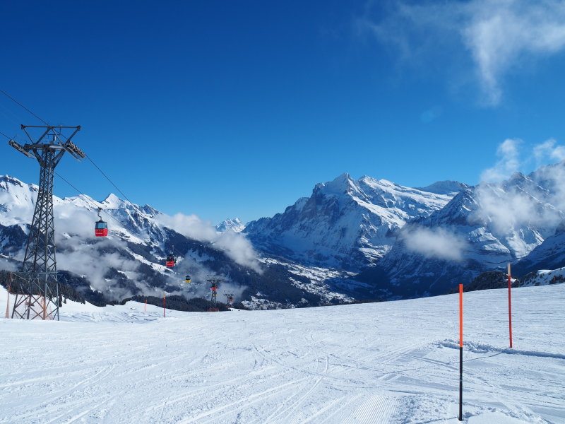 egyik fekete pálya háttérben az Eiger gleccser