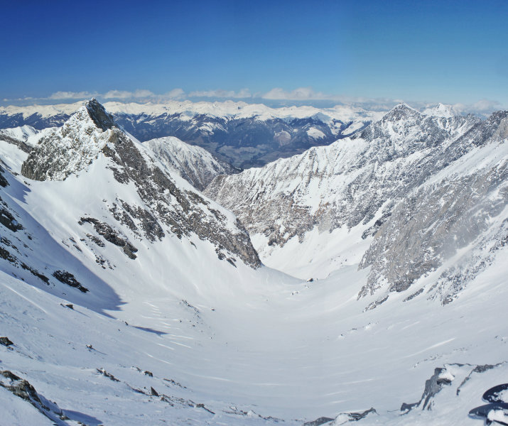 A Winterkarl első beszállója a Maurergleccser és a Kristallbahn teteje közt