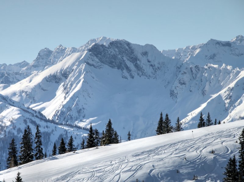 A Hahnkopf lift melletti kék pálya és a Magas-Tauern hegyi világa