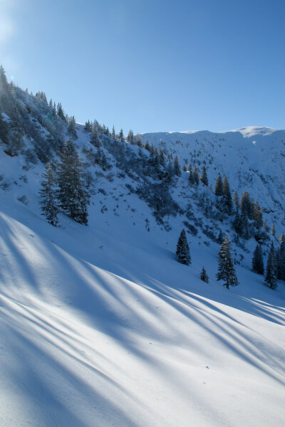 A havazások után kiderült, mínuszok, behavazott fenyőerdő, igazi téli nap