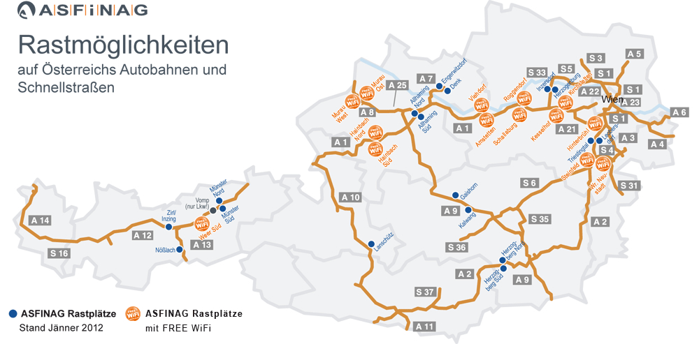 Az ingyenes internet-hozzáférés az autópálya pihenőhelyeken emellett lehetővé teszi az ASFINAG közlekedési információs szolgáltatásainak elérését is, amik minden úton lévőnek hasznosak lehetnek.