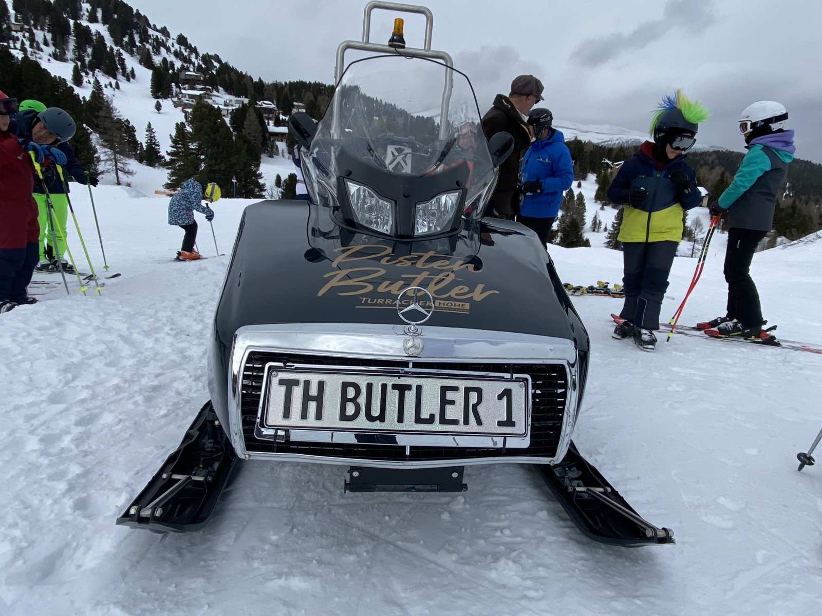 Síelés közben többször találkoztunk a pályákon, az un. sípálya komornyikkal (Pisten Buttler), aki minden alkalommal kedvesen, mosolygósan proseccoval kínált bennünket.