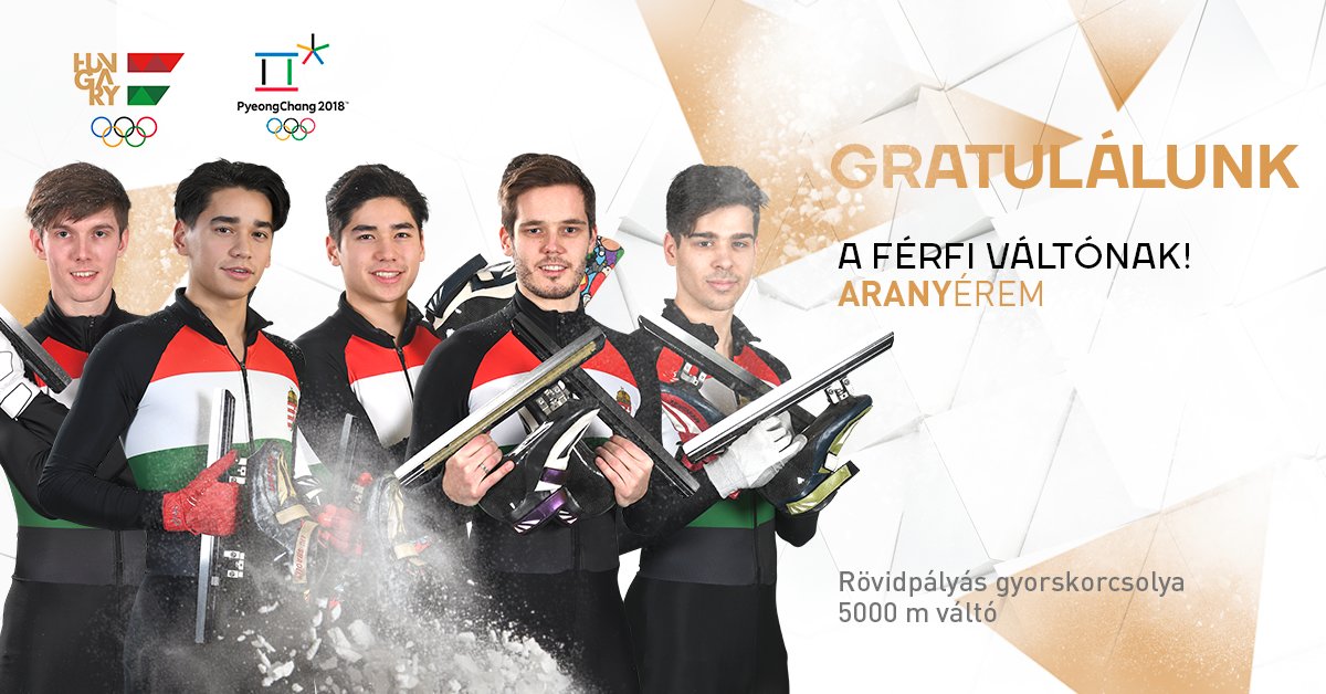 A Burján Csaba, Knoch Viktor, Liu Shaoang, Liu Shaolin Sándor összeállítású magyar csapat aranyérmet szerzett a férfi 5000 méteres rövidpályás gyorskorcsolyaváltók csütörtöki döntőjében a phjongcshangi téli olimpián. Ez Magyarország történetének első téli olimpiai elsősége.