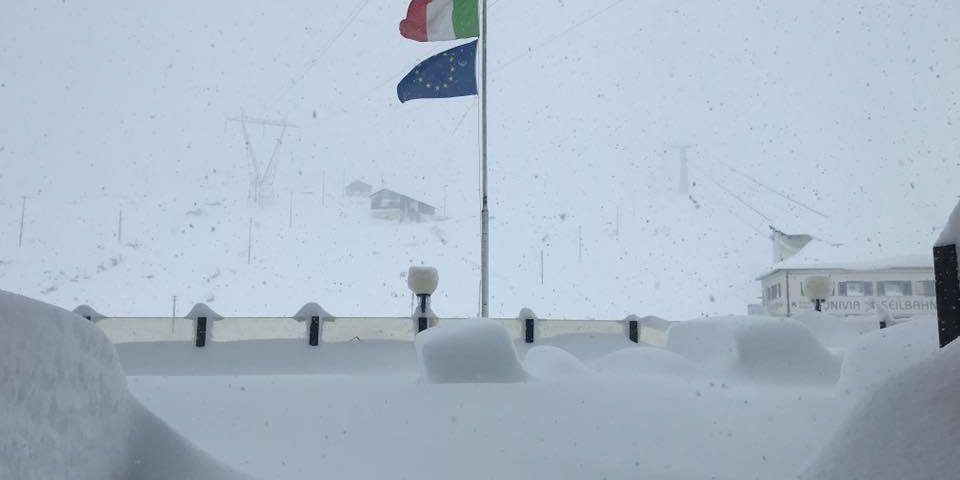 Olaszországban tegnap a Stelvio-hágó még járható volt. Azonban az elmúlt 24 órában 70 cm hó hullott a hágónál (2757 m), az utat le kellett zárni. Fentebb, a gleccseren, a sípályák magasságában, ahogy a lenti posztban is olvasható, méteres hó hullott.