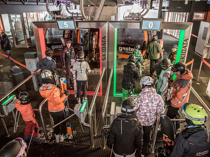 Még időben, az idei szezon kezdetére készült el az új típusú beléptető kapu a Gastein-völgyben található Stubnerkogel kabinoshoz. Bár túl sok konkrétumot nem árul el a gyártó oldala, de a képeken az látszik, hogy a síelők továbbra is áthaladnak egy forgókapun, amely a bérletek érvényességét ellenőrzi. Ezután egy repülőtereken használatoshoz hasonló kapu előtt kell megállni, ahol egy kijelző mutatja, hogy még hány szabad hely van a következő kabinban. Ez a szám már messziről látható, így a kisebb csoportok előre megszervezhetik a beszállást, hogy melyik érkező kabinba férnek be.