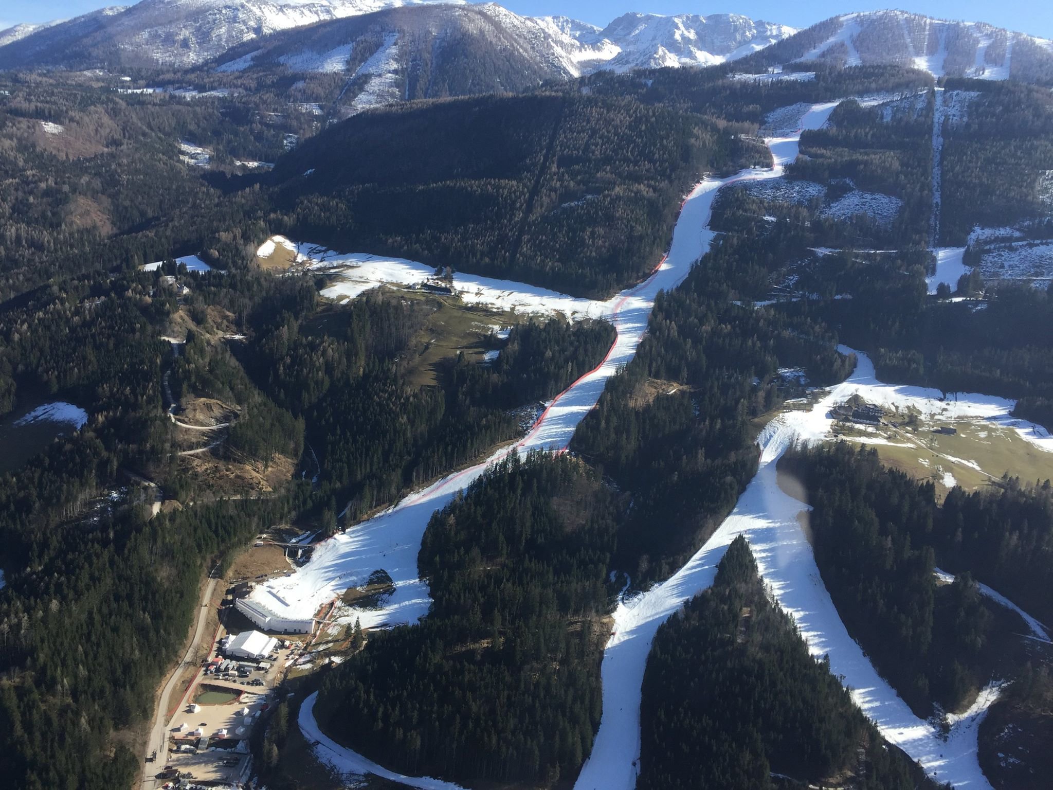 A helyiek természetesen már régóta készülnek a versenyekre, de az időjárás kicsit közbeszólt. Hétfőn Ausztriában beköszöntött a "tavasz", és a sípályán is 20 fokot mértek. A szervezők gyors döntést hoztak, teljesen lezárták a pályát, még az edzéseket is megtiltották, hogy óvják a pálya minőségét, amely szerintük továbbra is "nagyon jó" és egy méter vastag rajta a hó.
