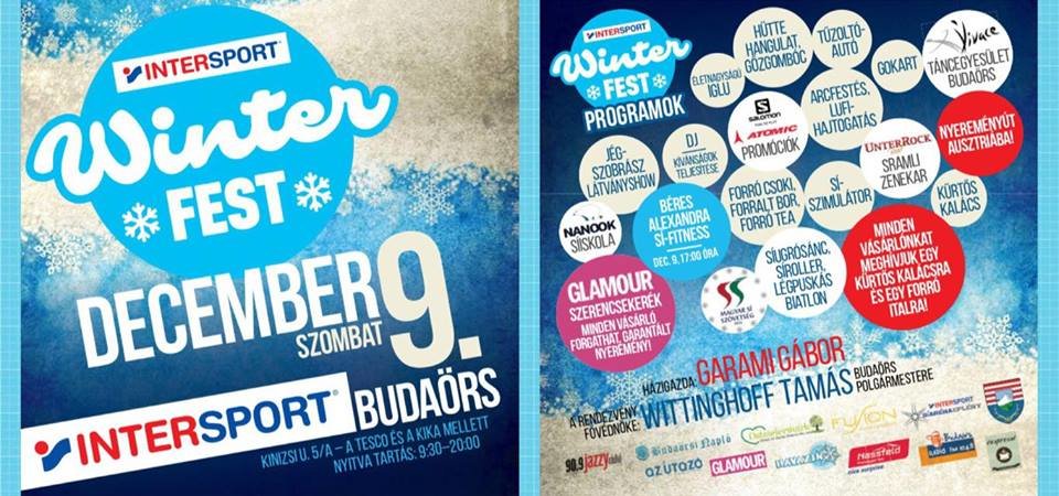 Egy igazi télnyitó eseményt rendez az Intersport a téli sportok szerelmeseinek: egész napos Winterfest családi fesztivál lesz 2017. december 9-én különleges attrakciókkal a budaörsi áruház mellett.
