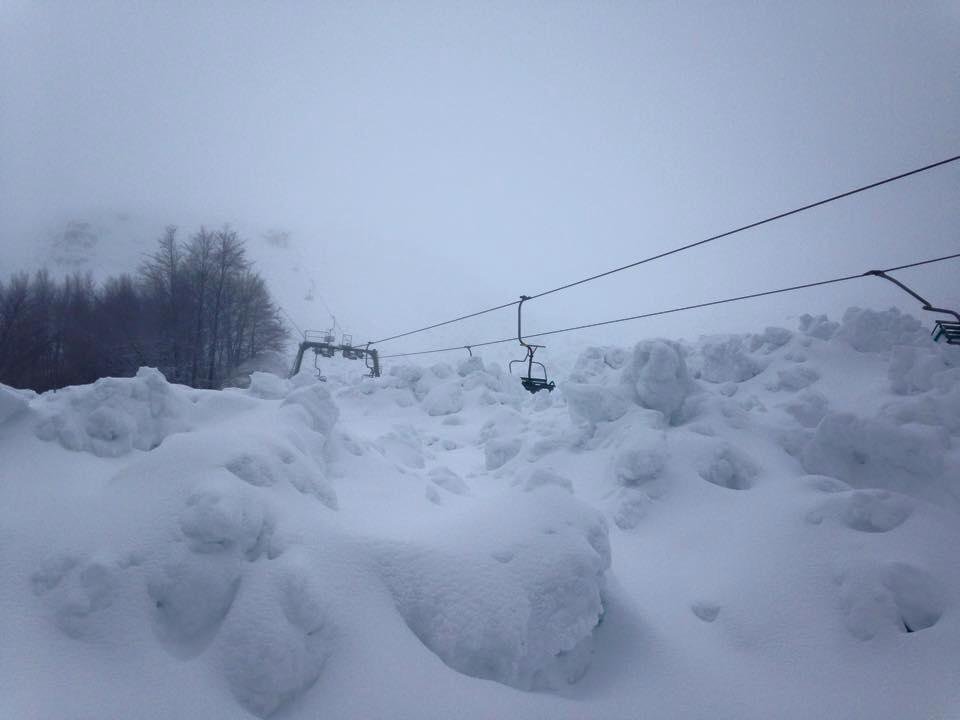 Az utóbbi napokban az Appenninek rengeteg havat kaptak, a hegyekben, a pályákon túl a helyi amatőr meteorológusok 150 cm vastag hóról számoltak be. A nagy havazás után hirtelen megemelkedett a hőmérséklet és ehhez még társult a viharos szél, így a síterep jobbnak látta, ha leállítja a legfontosabb liftjét, a tetőre közlekedő kétszemélyest.