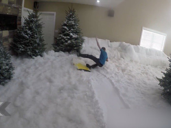 Az amerikai Roman Atwood eléggé bevállalós volt, hogy meglepetést szerezzen gyermekeinek. Az egyik éjszaka teljesen átrendezte a ház nappaliját. Igazi havat hozatott a házban és a filmekben használt "műhóval" keverte. Még fenyőket. és egy csúszdát is rakott a nappaliba. Volt is meglepetés másnap reggel.