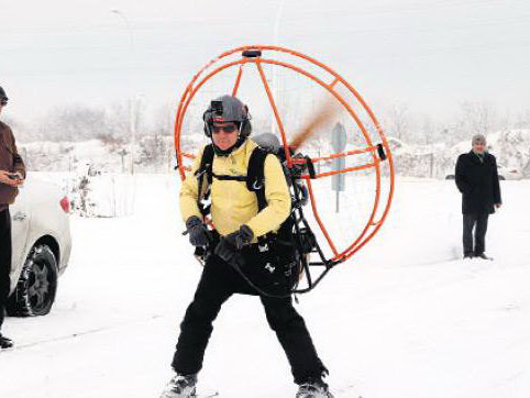 Beindult a havas szezon Törökországban is. Egy megrögzött motoros siklóernyősnek az jutott eszébe, hogy mi lenne, ha a hátimotort tényleg a hátára akasztaná és ezzel ki is találta a motoros síelést. Az ötlet annyira megtetszett neki, hogy jövőre már külön hátimotorokat gyártana a síléceseknek is.