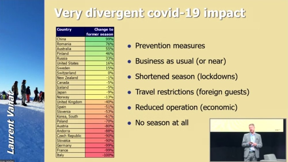A világ 68 országában üzemelnek szabadtéri síliftek. Ezen országok közül 6 döntött úgy, hogy azokat leállítja a koronavírus-járvány idején. Az alpesi országokban bevezetett lockdown teljesen átrendezte a sípiacot és felborította a megszokott rangsorokat.