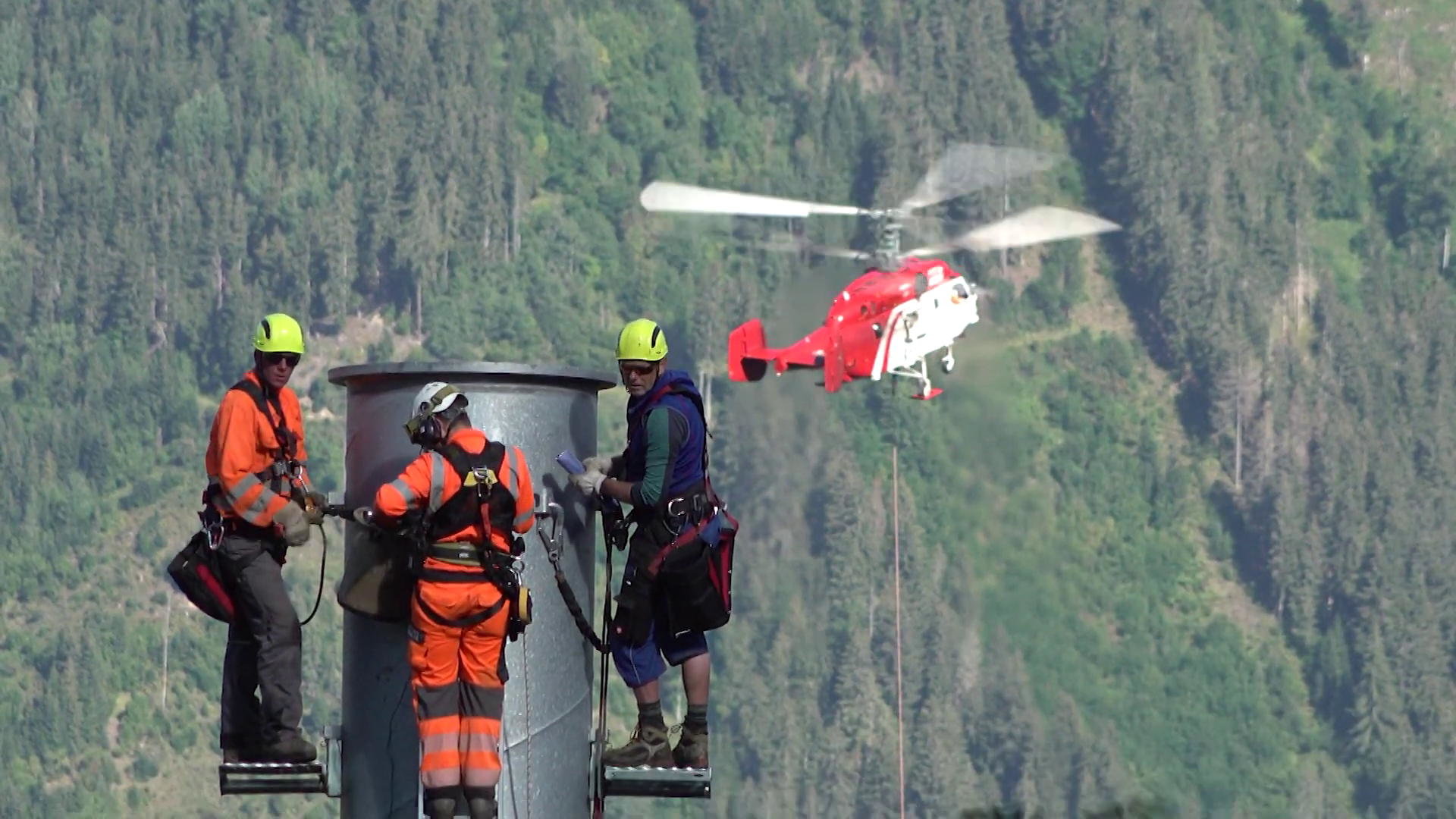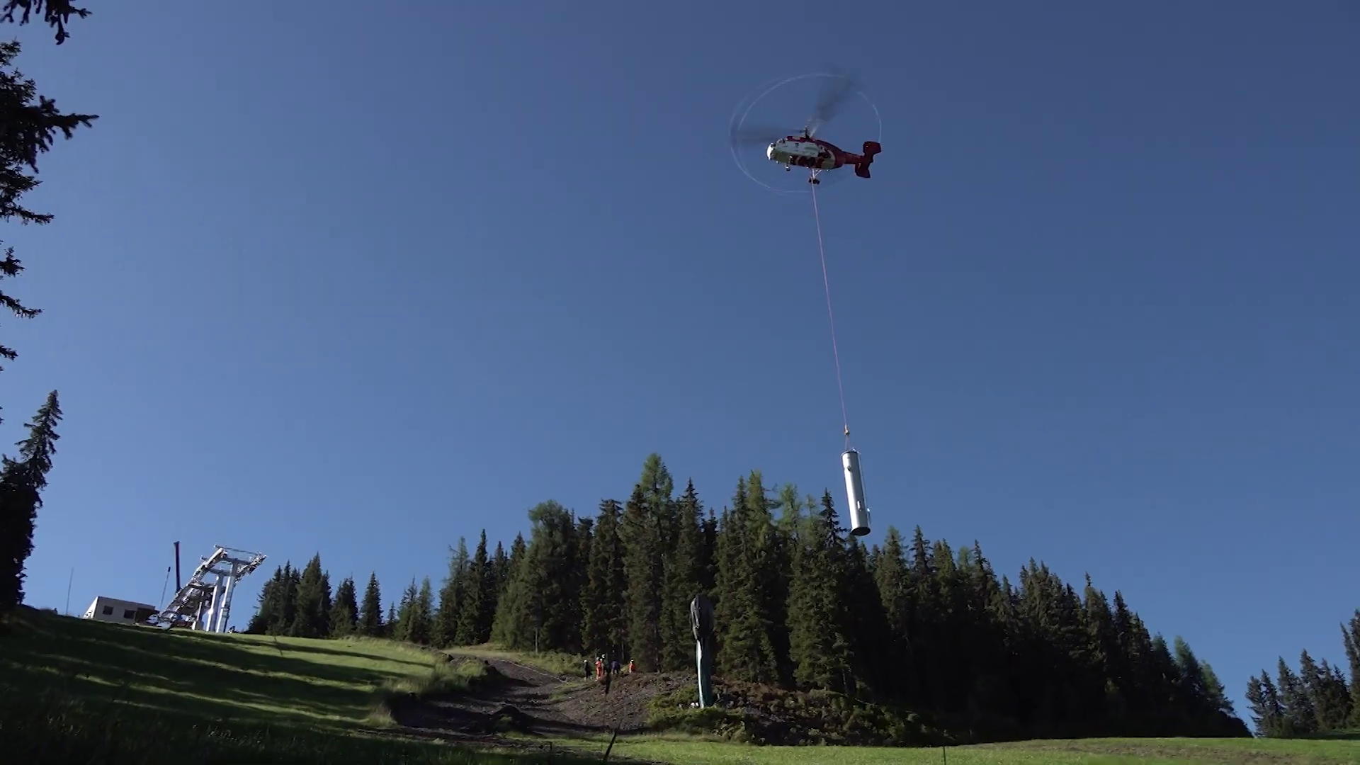 Az építkezés egyik leglátványosabb része mindig, amikor helikoptereket hívnak segítségül. Legtöbbször az új lift nyomvonalán található tartóoszlopokat szokták helikopterrel a helyükre tenni. A megoldás természetesen nem olcsó és nem is egyszerű, de sok időt lehet vele spórolni. És nem beszélve azokról a helyzetekről, amikor a terep nehéz megközelíthetősége miatt sokkal egyszerűbb a levegőben a szállítás.