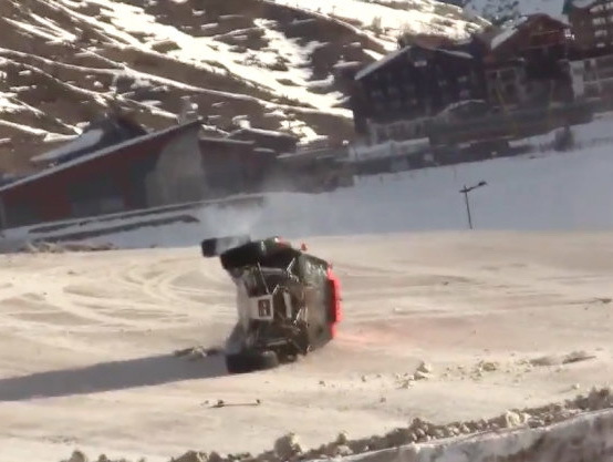 Chicherit nem kezdő sem a síelés, sem az autóversenyzés tekintetében. Tavaly Tignes síterepén egy hátraszaltót dobott a kocsijával, majd a hóban landolt. Ez a kísérlet, ahogy a lenti videóban is látható, sokkal jobban sikerült.