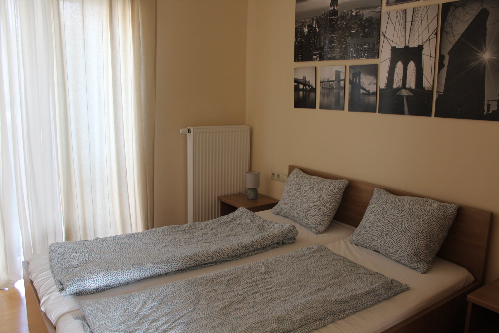 Az ingatlant közös, 1/6 tulajdoni hányadként 4 magyar magánszemély tulajdonolja, mely használati megosztással hat 42 m²-es önálló lakást tartalmaz. A eladó lakások (2 a földszinten, 2 az I. emeleten) zárt lépcsőházból nyílik, előszoba, konyha, két külön hálószoba, tusoló és külön WC elrendezésben. Minden lakásnak ca. 4 m²-es terasza van.