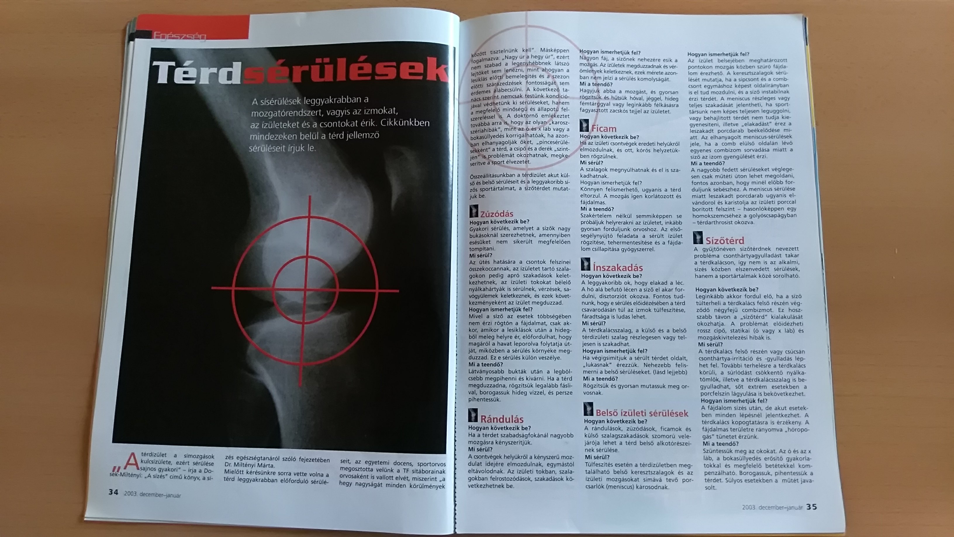 Mielőtt kérésünkre sorra vette volna a térd leggyakrabban előforduló sérüléseit, az egyetemi docens, sportorvos megosztotta velünk a TF sítáborainak orvosaként is vallott elvét, miszerint "a hegy nagyságát minden körülmények között tisztelnünk kell". Másképpen fogalmazva: "Nagy úr a hegy úr", ezért nem szabad a legenyhébbnek látszó lejtőket sem lenézni, mint ahogyan a lesiklás előtti bemelegítés és a szezon előtti szárazedzések fontosságát sem érdemes alábecsülni. A következő tanács szerint nemcsak testünk kondíciójával védhetünk ki sérüléseket, hanem a megfelelő minőségű és állapotú felszereléssel is. A doktornő emlékeztet továbbá arra is, hogy az olyan "karosszériahibák", mint az ó és x láb vagy a bokasüllyedés korrigálhatóak, ha azonban elhanyagolják őket, "pincesérülésekként" a térd, a csípő és a derék "szintjén" is problémát okozhatnak, megkeserítve a sport élvezetét.