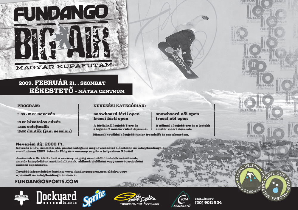 Köszönet a támogatóknak: Fundango, Smith Optics, Sprite, Magyar Snowboard szövetség, Dockyard üzletek, Mátra Centrum.
