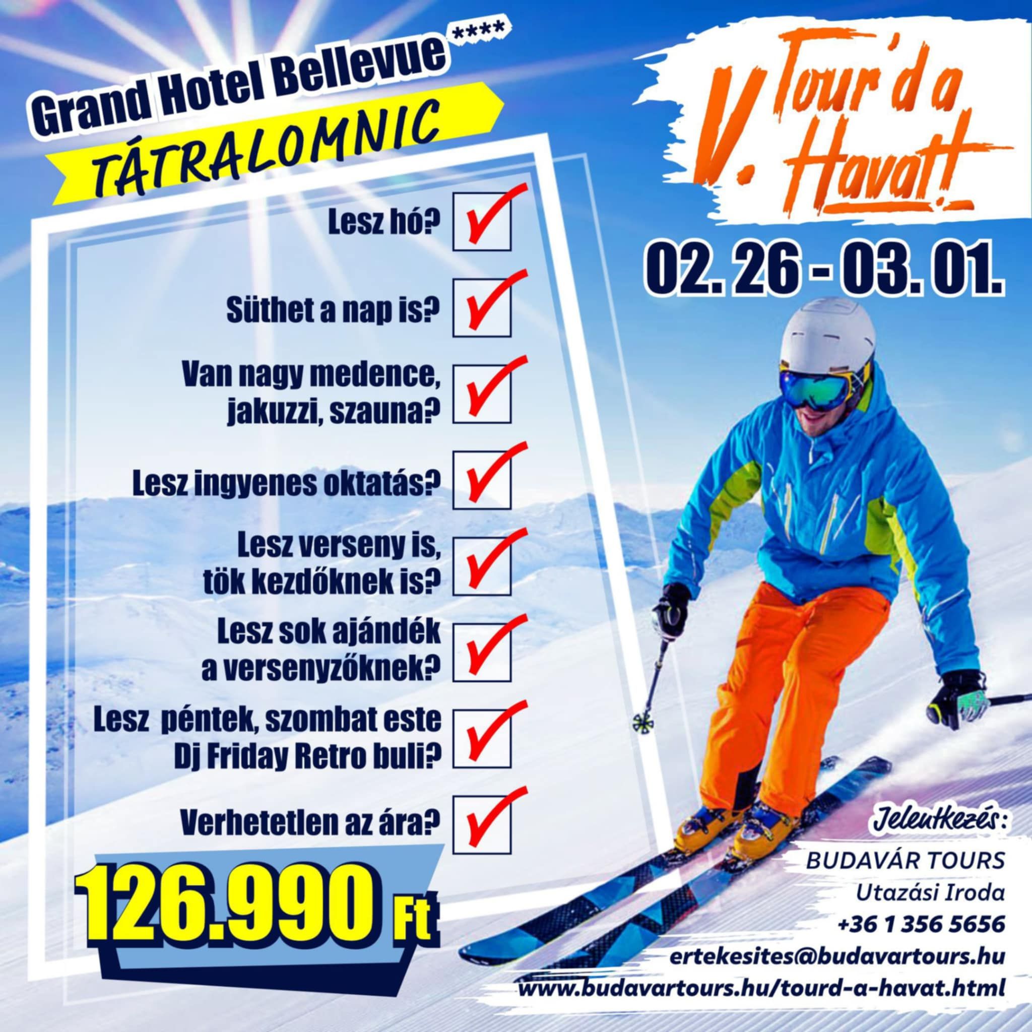 2026. február 26. és március 1. között idén is megrendezik a Magas Tátrában a "Túr'd a Havat" elnevezésű társasági síversenyt a Slovakia Travel, a Magyar Síakadémia és a Budavár Tours szervezésében. Még lehet jelentkezni!