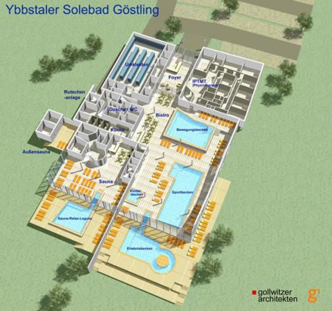 A Ybbstaler Solebad vállalat által épített vízi világ megépítéséhez az alsó-osztrák tartományon kívül az Unió is kemény eurókkal járul hozzá. Szükség is lesz rá, hiszen a teljes költségek megközelítik a hatmillió eurót (kb. 1,6 milliárd forint). Összesen 350 négyzetméternyi vízfelületen négy medence osztozik, köztük egy kültéri élménymedence, egy belső gyermekmedence, és egy nagymedence. A külső és a terápiás medencében kicsit megnövelik a víz sótartalmát. Négy szauna is várja az érdeklődőket, köztük olyan, amelyiket csak szabadtéren keresztül lehet majd megközelíteni, ami igazi élmény lesz a hóban és mínuszban. Ezen felül vendéglő is épül majd a komplexumban, amely a tervek szerint harminc alkalmazottnak ad majd állást. A visszajelzések szerint az osztrák cikkeinket a síterepeken munkát vállaló honfitársaink is szívesen olvassák, ezért most időben szólunk, hogy még nem késő beadni a jelentkezést.