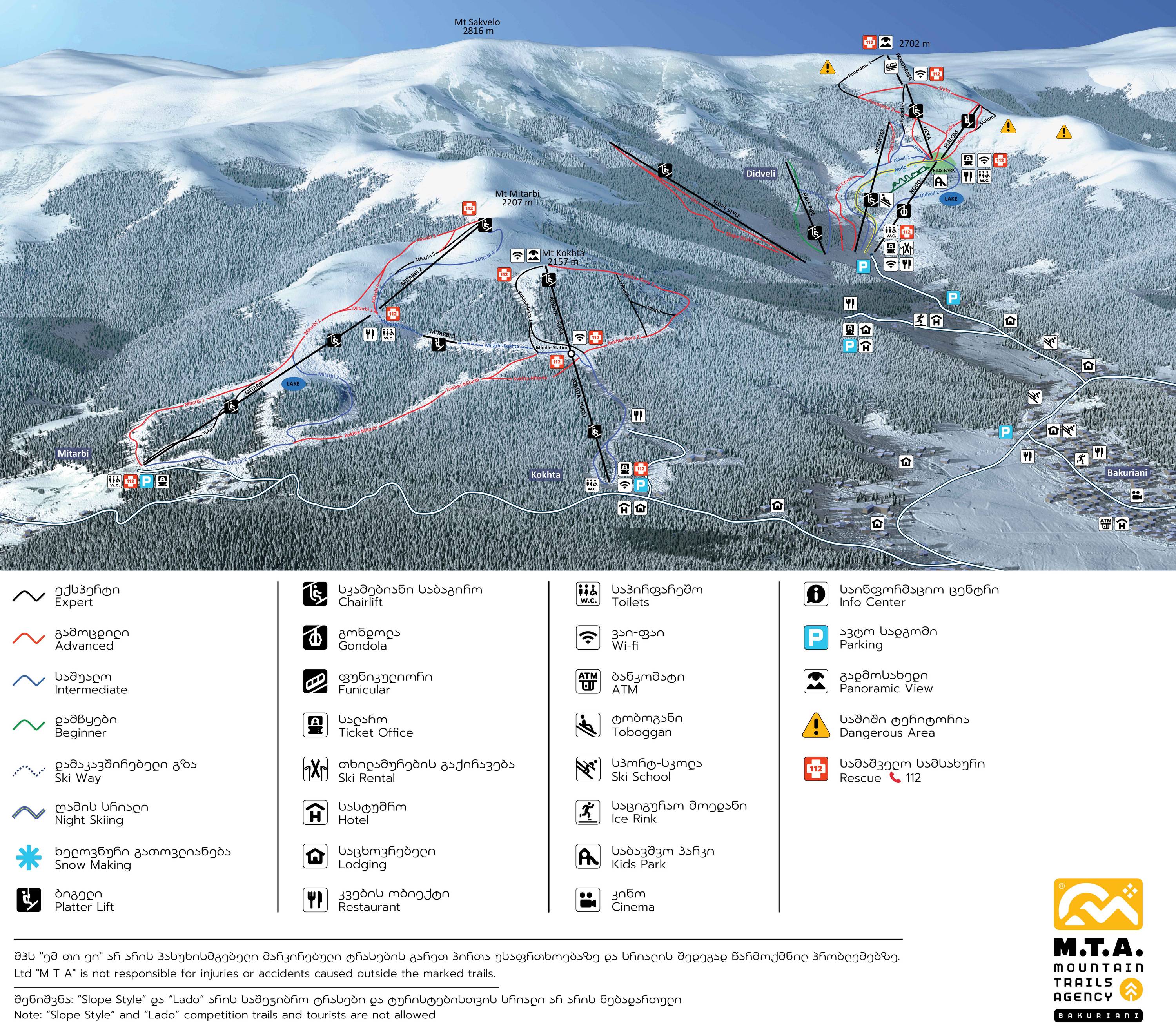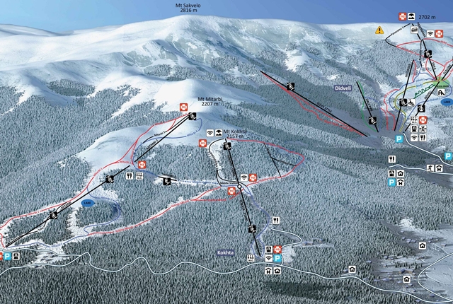 Bakuriani síterephez, ahogy a fenti térkép is mutatja Mitarbi, Kokhta és Didveli pályái tartoznak.