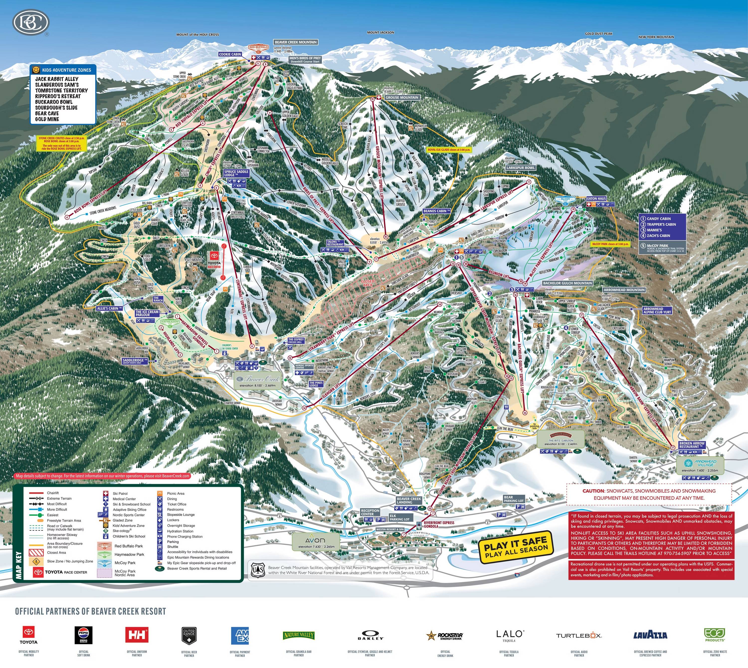 Beaver Creek 150 pályával nem csak nagy, hanem rendkívül modern síparadicsom. Alulról fűtött sétányok, mozgólépcsők, liftek (ezúttal nem sílift) könnyítik meg és teszik kényelmesebbé a mindennapokat. Az utóbbi évek során egyre több sípályát vontak be a ratrakolásba, így a kezelt lejtőket előnyben részesítők között nagy sikere van a helynek. A hegy méltán híres Talons része kalandos meredélyekkel, részint duplagyémántosokkal csalogatja a jó síelőket.