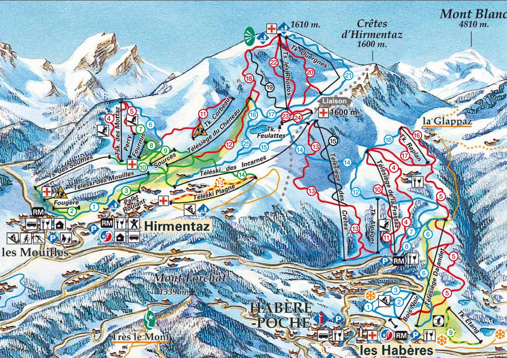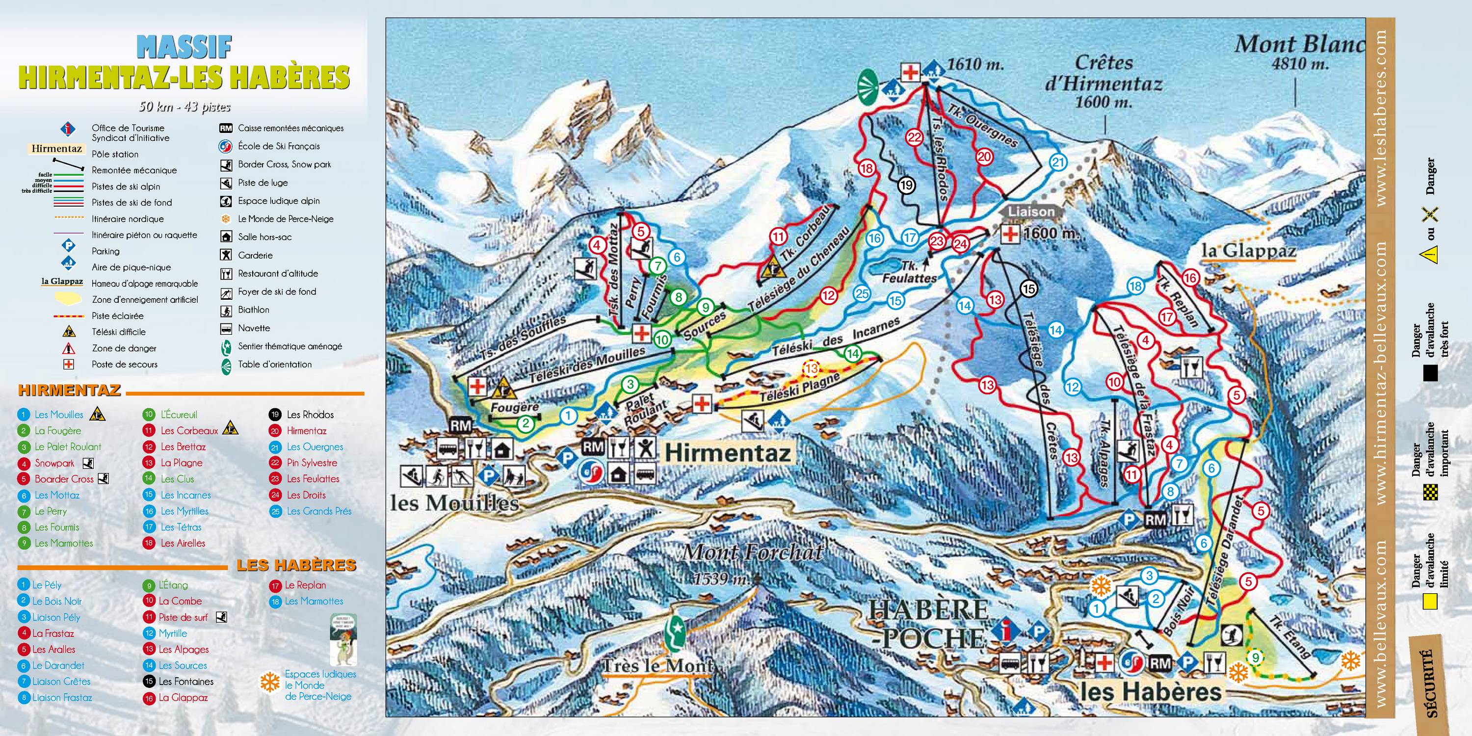 A síterep mintegy 50 km-nyi pályával rendelkezik, és két jól elkülöníthető részre oszlik: Hirmentaz-ra és Les Habéres-re, a két részt a Cretes d’Hirmentaz gerince választja el. A Hirmentaz-i rész legmagasabb pontja 1602 m-en van, ide egy húzós és egy ülős felvonóval is fel lehet jutni. Itt található a terület egyetlen fekete pályája, a Les Rhodos. A hópark és boardercross pálya a Mottaz nevű húzós felvonó mellett van. A két részt elválasztó gerincre az Incarnes húzós felvonó visz fel, míg a Les Habéres-i oldalról a Cretes nevű ülős felovonó biztosítja az összeköttetést. Ez egyben a Les Habéres-i oldal legmagasabb pontja (1530 m), és innen egy piros, illetve az ezen oldal egyetlen fekete pályáján, a Les Fontaines-em juthatunk vissza Les Habéres felé. Ebben a szektorban is van hópark illetve boardercross pálya. A környéken több sífutópálya is található.